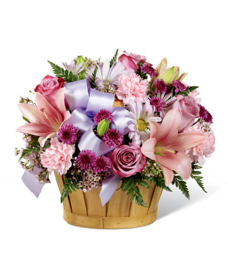 The flowers come in a gorgeous oval woodchip basket that looks lovely in any room. The bouquet adds a calming pop of color that will delight anyone who sees it. Local florists offer same-day delivery of the Little Miss Pink Bouquet to anywhere in the United States. This means you can send this beautiful bouquet as soon as you hear the wonderful news.
